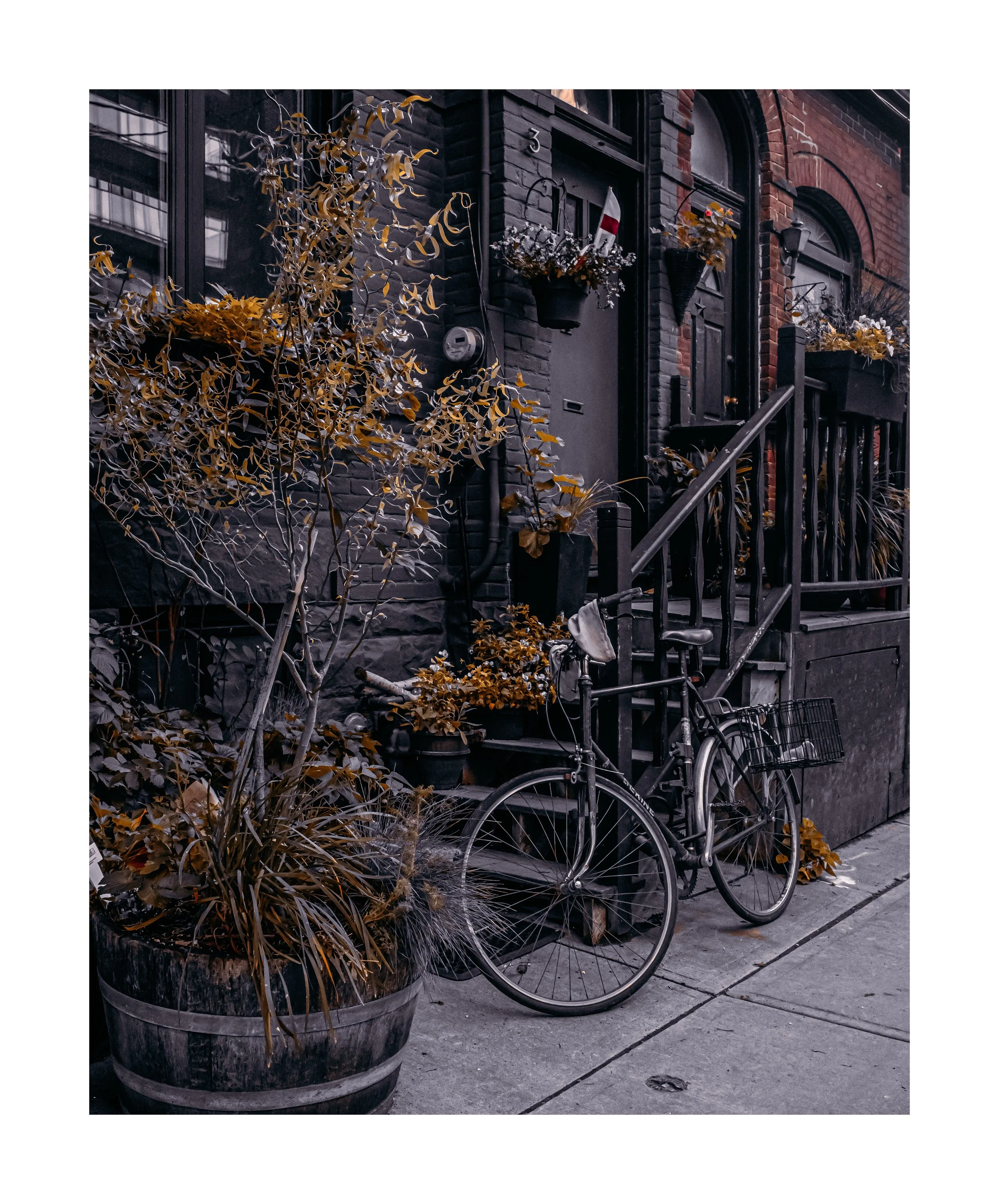Captured on July 10, 2021 in downtown Toronto while walking the city exploring different laneways. I noticed an older building with a bicycle outside. It looked like iād imagine it would have looked like back in the day, with a slight edit to make it look more vintage. I love the composition and vintage feel of the photo.